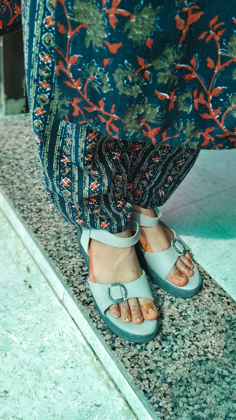 The soft, cushioned sole shows natural signs of wear, and the simple front buckle detail keeps the look clean and elegant. From balcony shoots, travel prep days, to quick walks downstairs — they’ve been part of my most relaxed moments.
